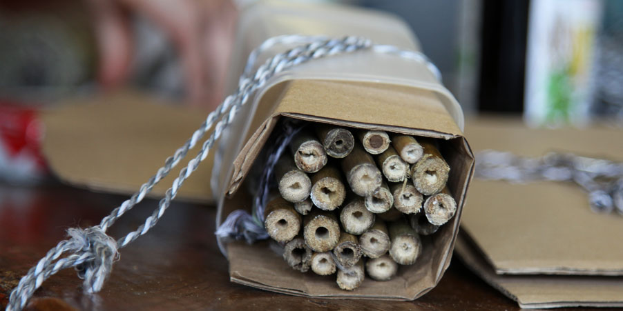 4. Squeeze twigs into the tube tightly enough so they stay in place