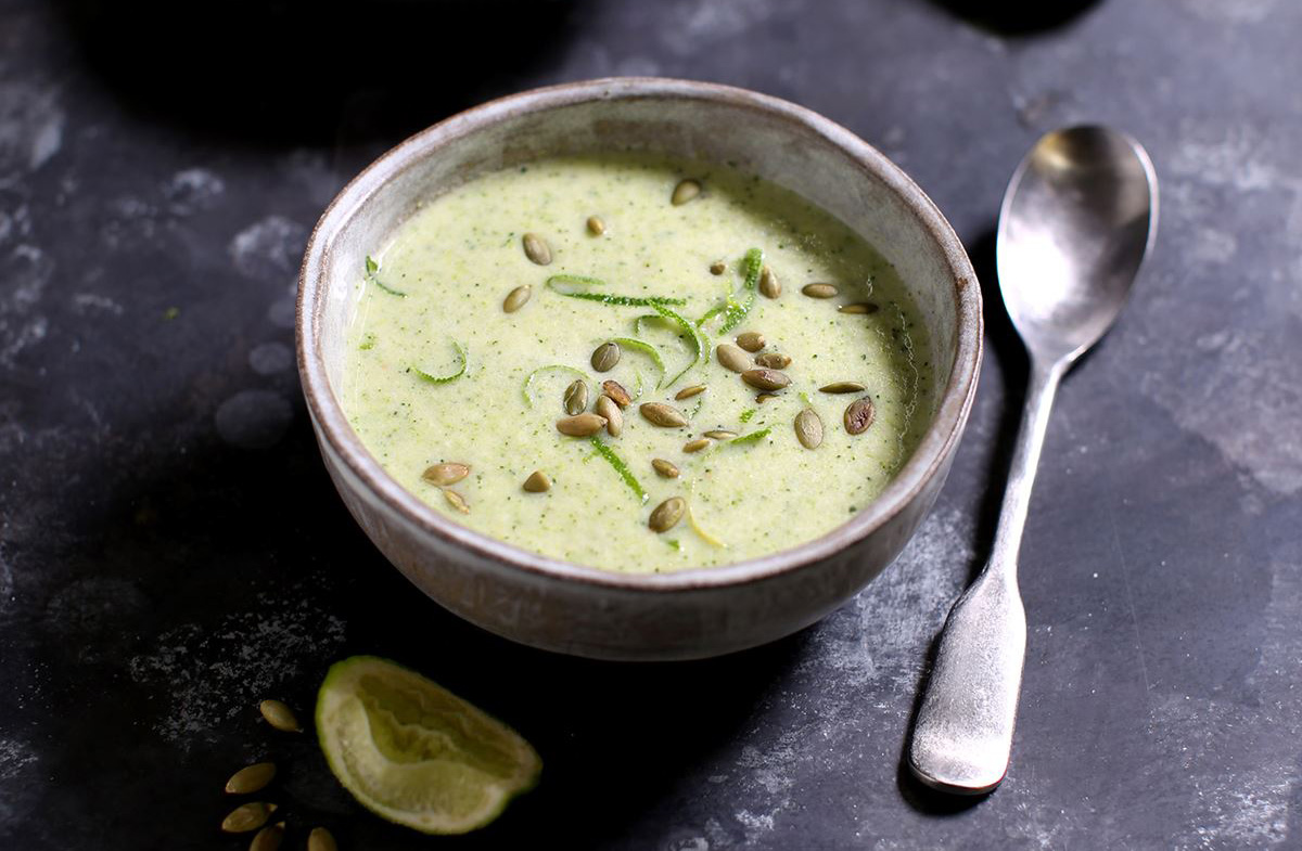 Looking for a vegetable soup recipe with a difference? This silky smooth soup offsets the mellow nuttiness of courgette and broccoli with creamy coconut milk infused with a lick of ginger heat, and plenty of zing from a big squeeze of fresh lime juice.