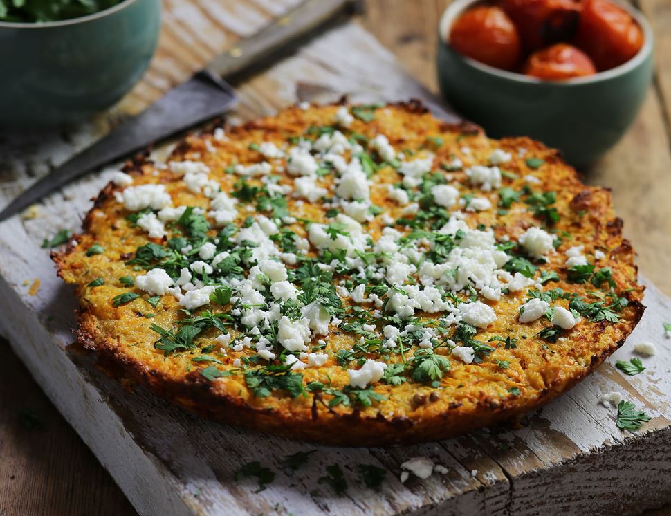 If your pan is ovenproof, place it under the grill for 4-5 mins to cook the top. It should be crisp and golden. If your pan isn’t ovenproof, slide the fritter out of the pan onto a baking tray after it has cooked on the hob for 4-5 mins, then grill for 4-5 mins.