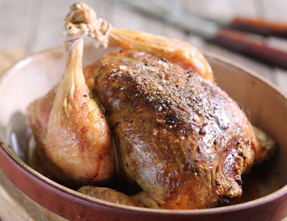 Remove the chicken from its wrapping and remove the giblets. Save them for making homemade stock (see our tip at the end). Pat the chicken dry and pop it in a roasting tin.