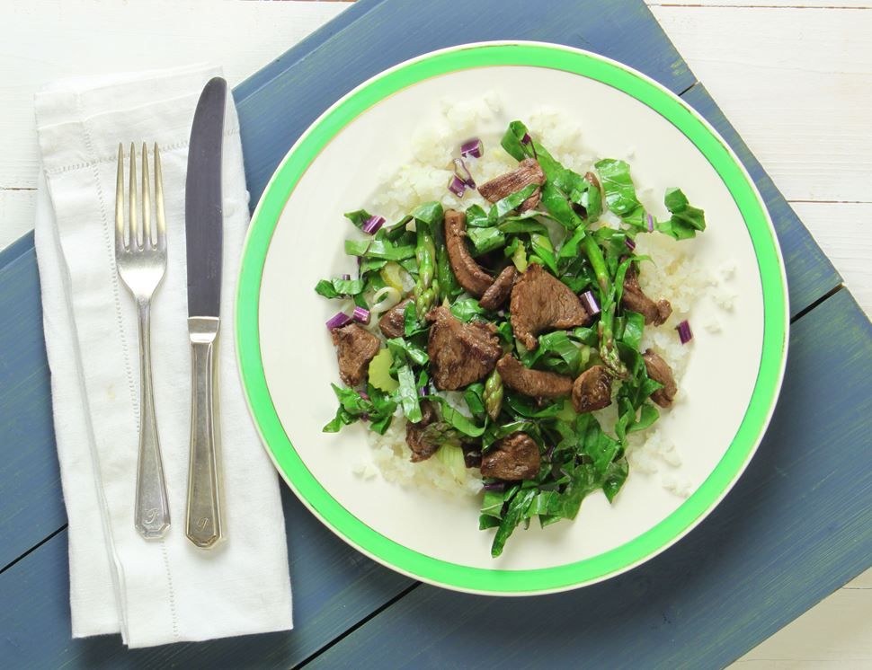 Stir fry the venison and veg together for 2-3 mins to heat everything through. Drain the kohlrabi rice. Serve the rice with the venison stir-fry.