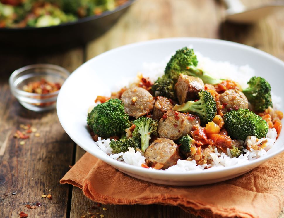 Warm a medium pan over a medium heat for 1 min. Add ½ tbsp oil and the sausages. Fry for 5- 8 mins, turning once or twice, till the sausages are browned all over.