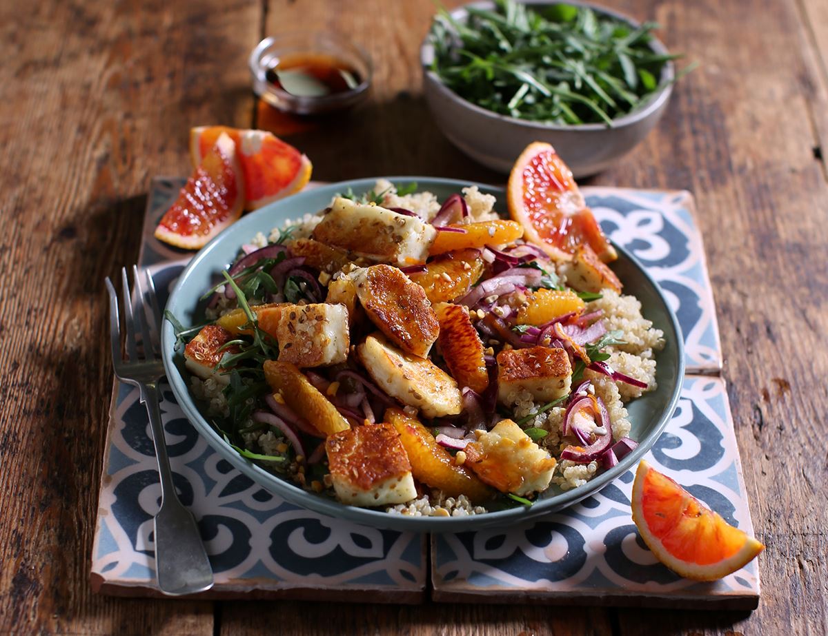 Dukkah Crusted Halloumi with Blood Oranges & Quinoa