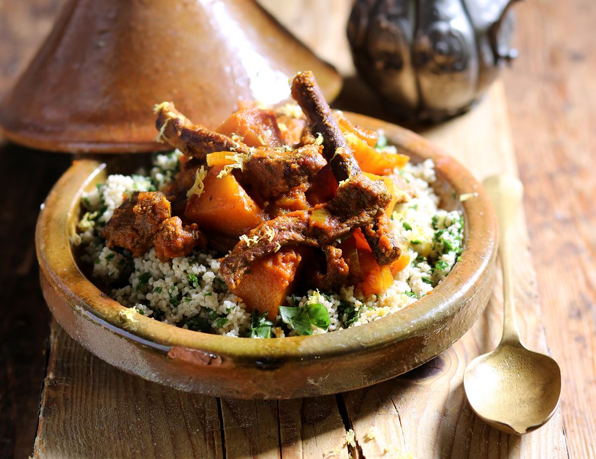 Moroccan Turmeric Beef & Squash Stew with Lemon Spinach Couscous