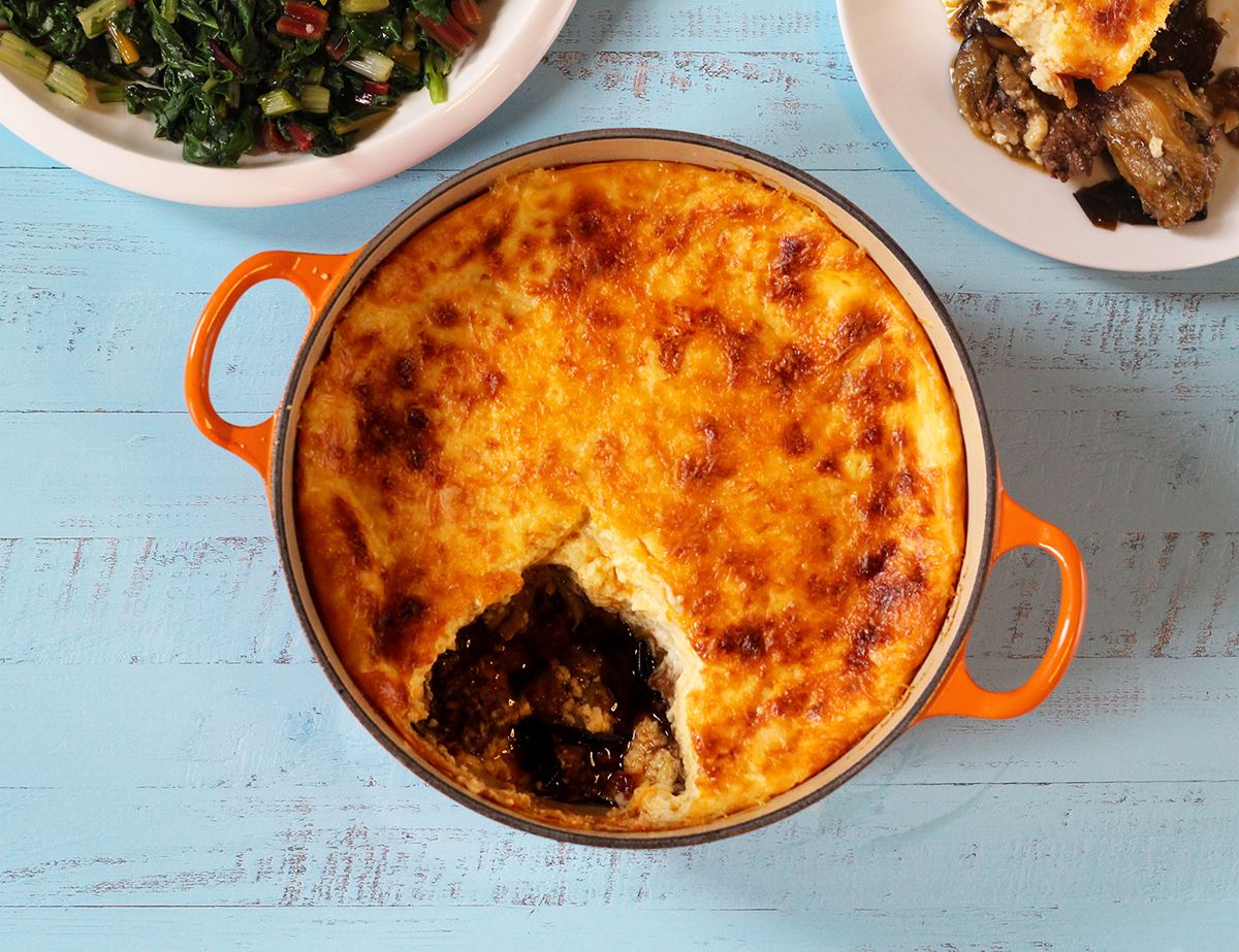 Greek moussaka is a firm holiday favourite, as well as classic taverna special. It’s a hearty, indulgent dish made with layers of tender roast aubergine and rich lamb mince, topped off with a creamy béchamel sauce.