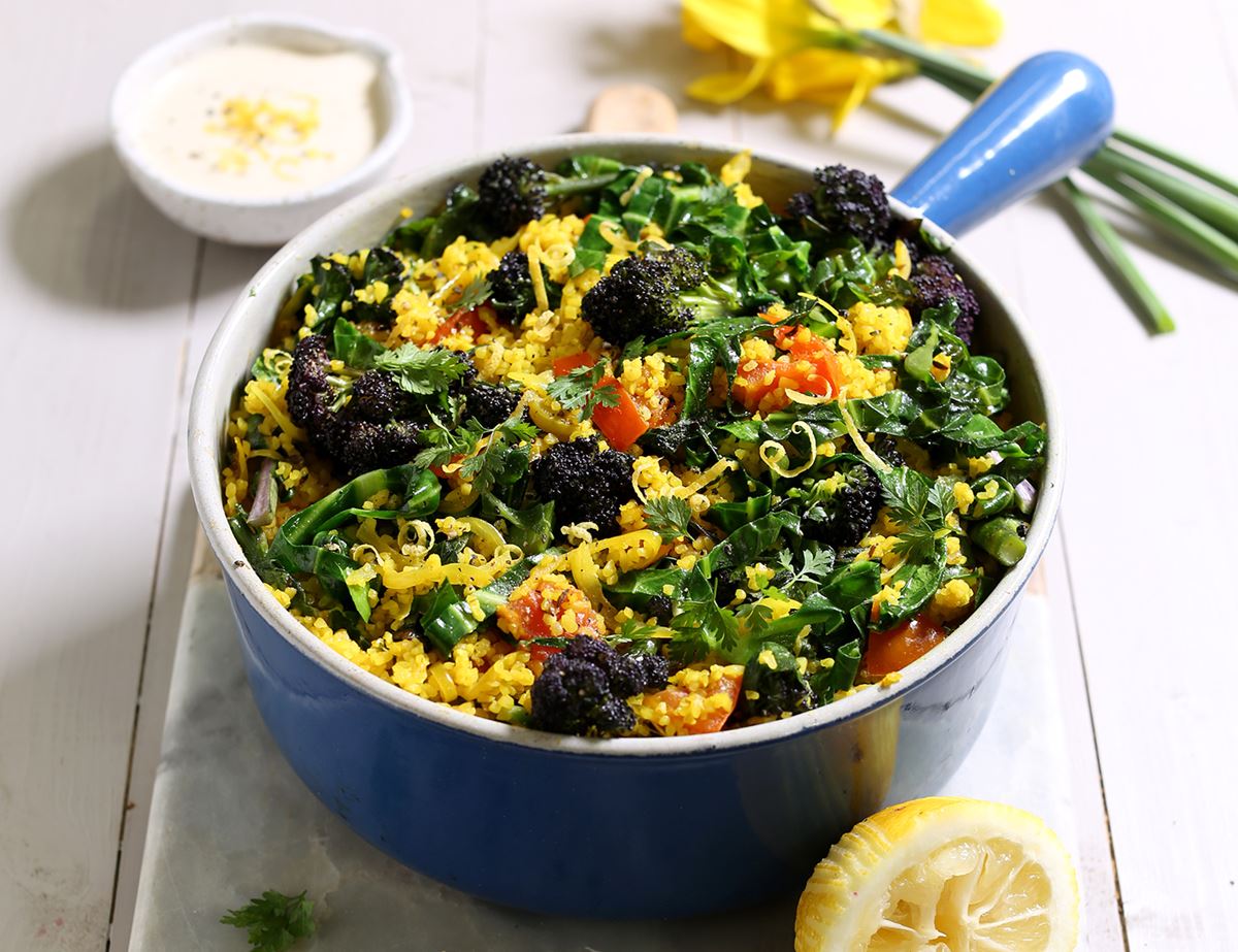 Purple Sprouting Broccoli & Turmeric Pilaf