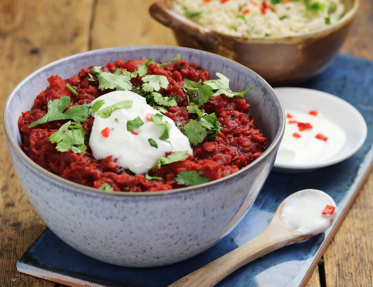 Ruby Murray was the name of a lovely Irish singer – it’s also rhyming slang for 'curry'. This particularly scarlet nod to its namesake blends deep, earthy beetroot with tender red lentils, chilli heat and warming spices, cooled with a good dollop of yogurt.