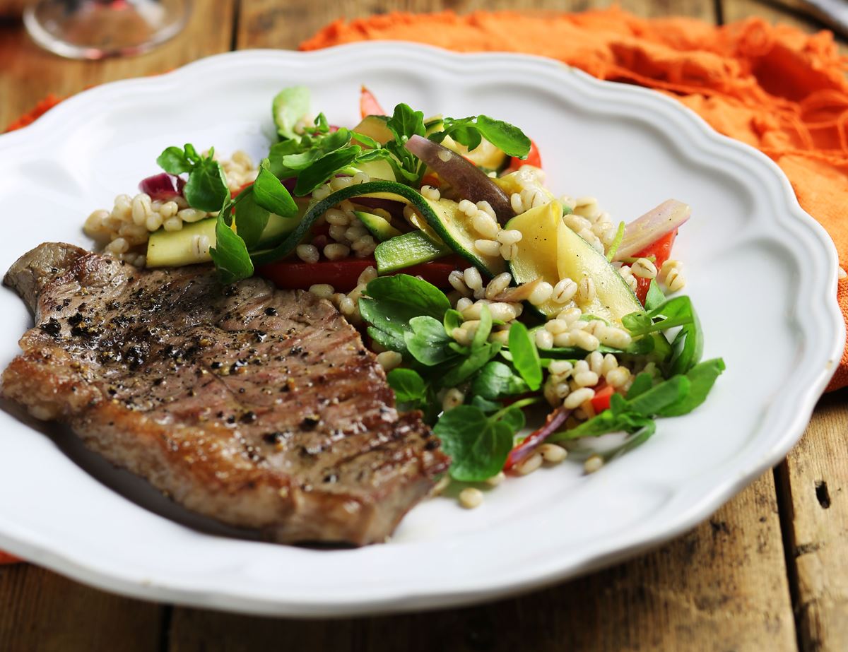 Warm Steak, Pearl Barley & Watercress Salad